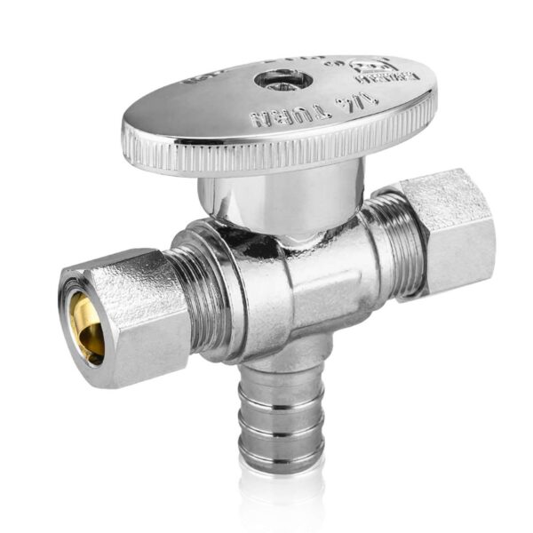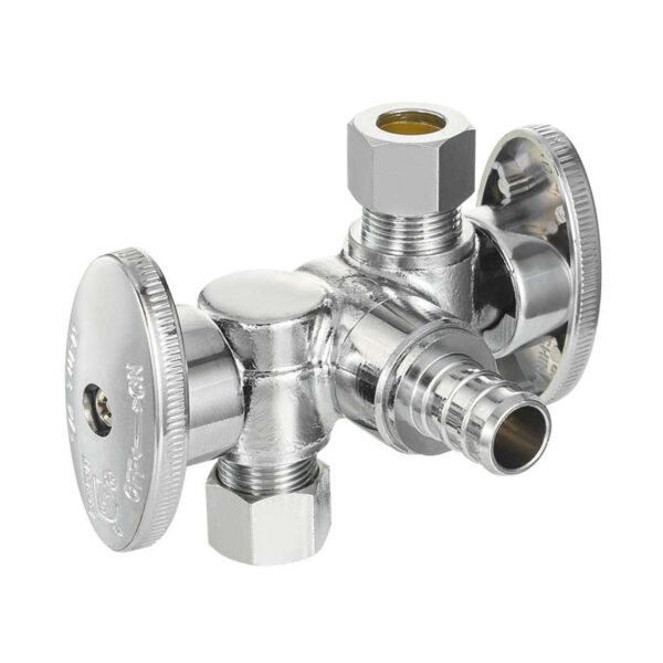 1/4-Turn PEX Crimp 3 Way Dual Outlet Stop